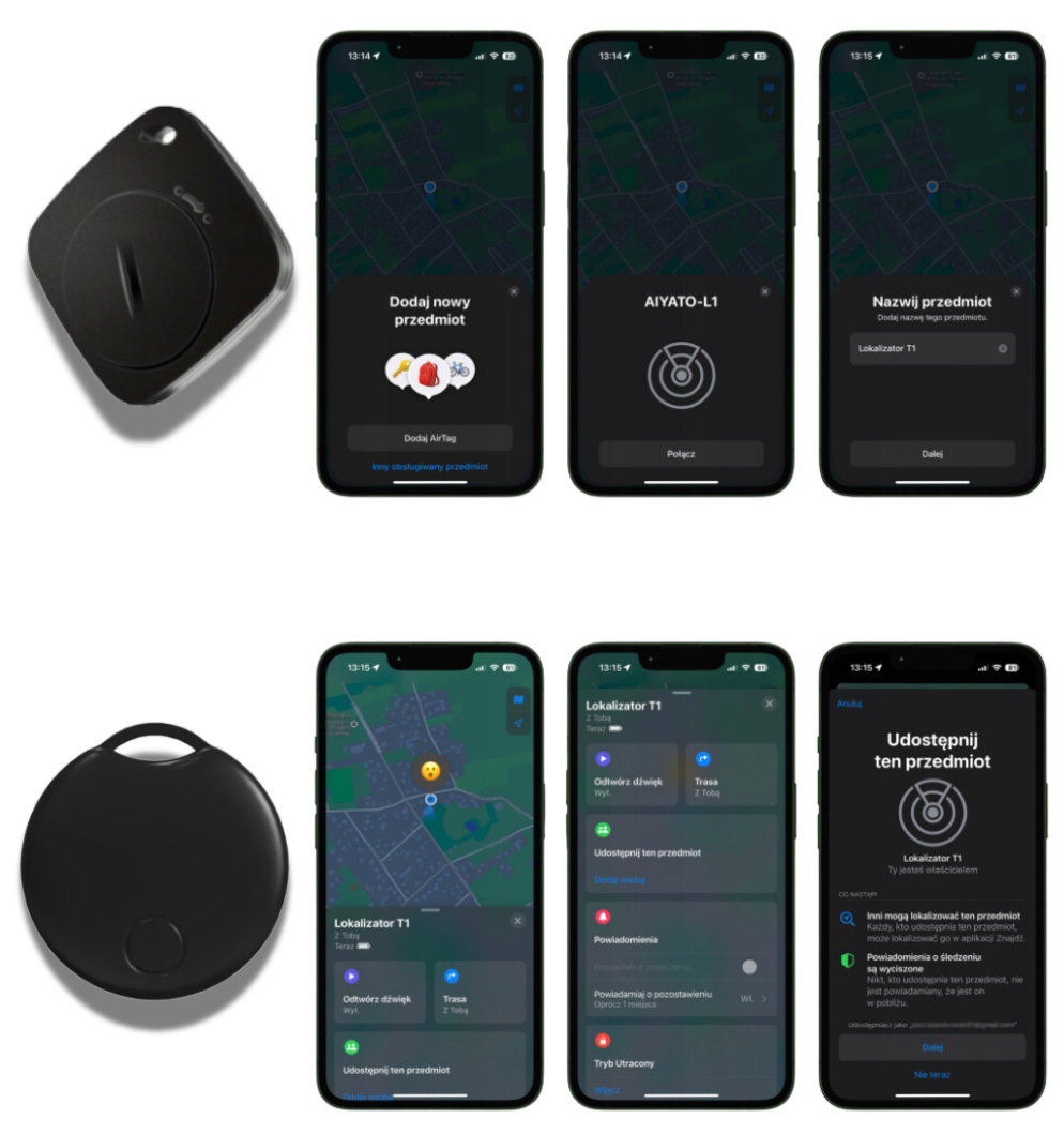 • Lokalizatory kompatybilne z Apple Find My – w pełni zintegrowane z aplikacją „Znajdź” w systemie iOS. Wystarczy sparować je z iPhonem, by korzystać z rozbudowanej sieci Apple, która pozwala zlokalizować zgubę nawet wtedy, gdy nie jesteś w jej pobliżu.