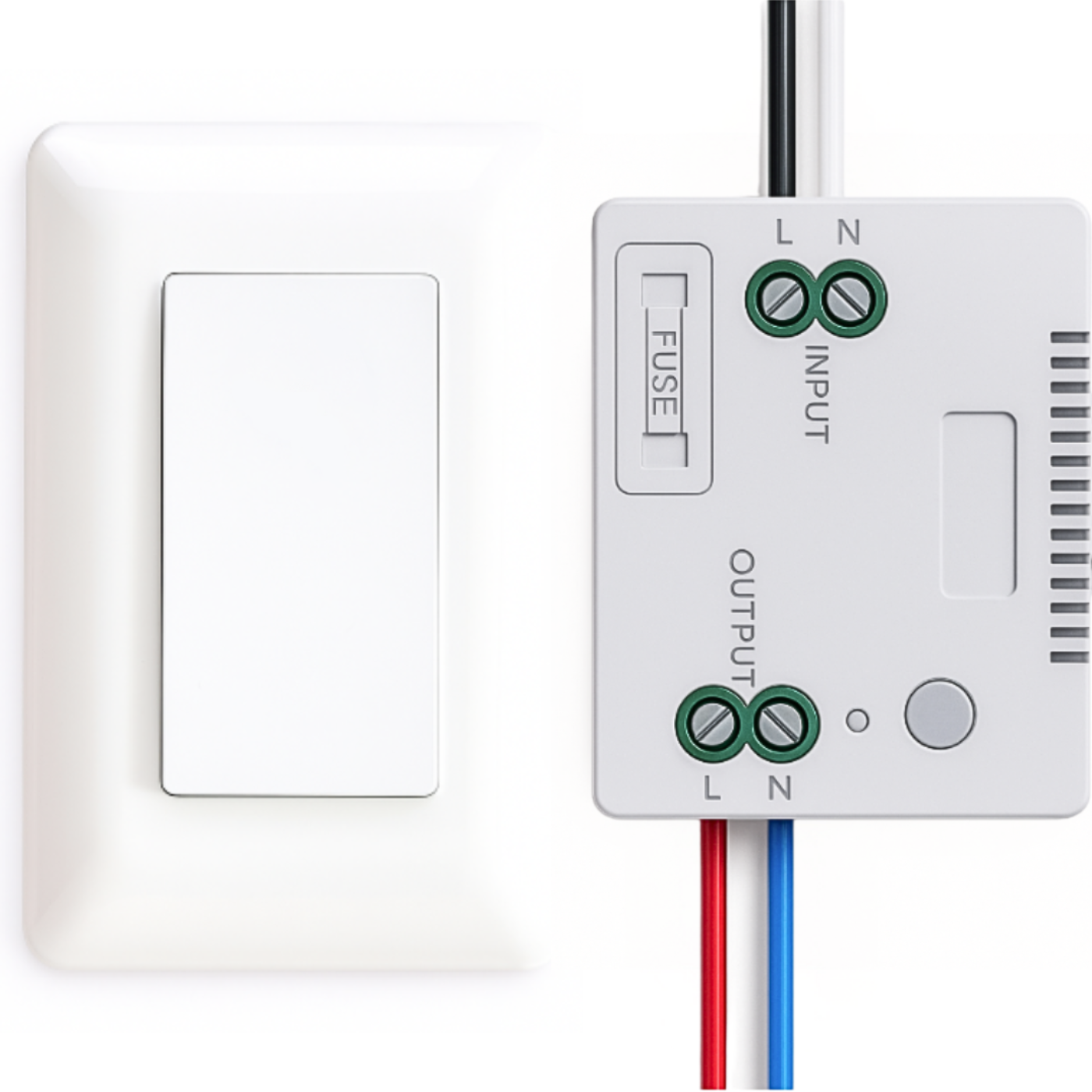 - 1 włącznik — wiele odbiorników: jednym kliknięciem rozświetlasz kilka obwodów jednocześnie — np. całe podwórko lub strefy LED w ogrodzie. Instalacja sprowadza się do wsunięcia odbiornika pomiędzy zasilanie a lampę i przyklejenia bądź przykręcenia panelu tam, gdzie Ci wygodnie.