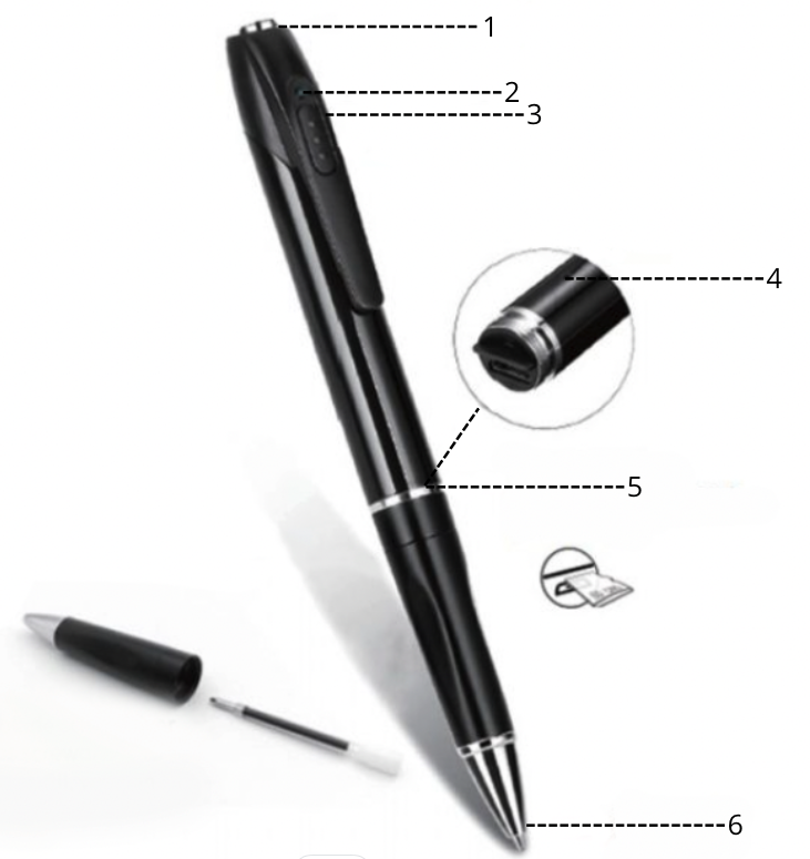 Długopis obsługuje karty SD do 128 GB, dzięki czemu możesz nagrywać obraz przez długi czas. Zgrany materiał można łatwo wysłać np. na maila, WhatsAppa, MMS-em, itp.