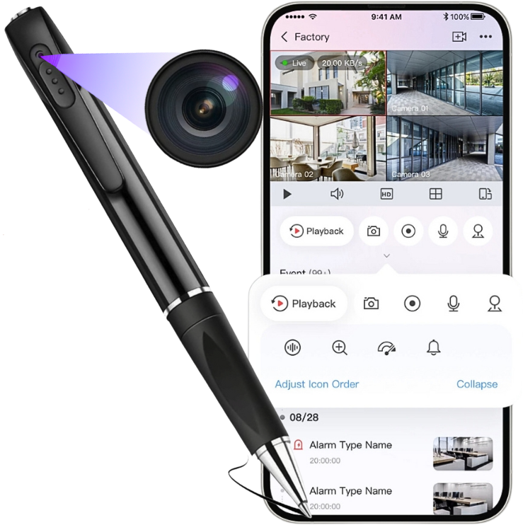 Dzięki temu, że urządzenie jest tak niepozorne można go zastosować praktycznie w każdej sytuacji. Długopis zmieści się do każdej kieszeni więc możemy go mieć zawsze przy sobie, aby w razie potrzeby móc uwiecznić daną chwilę. Mało widoczna dioda sygnalizacyjna, aby nie wzbudzać podejrzeń osób postronnych.
