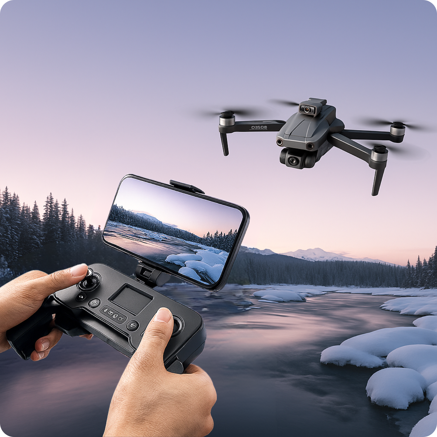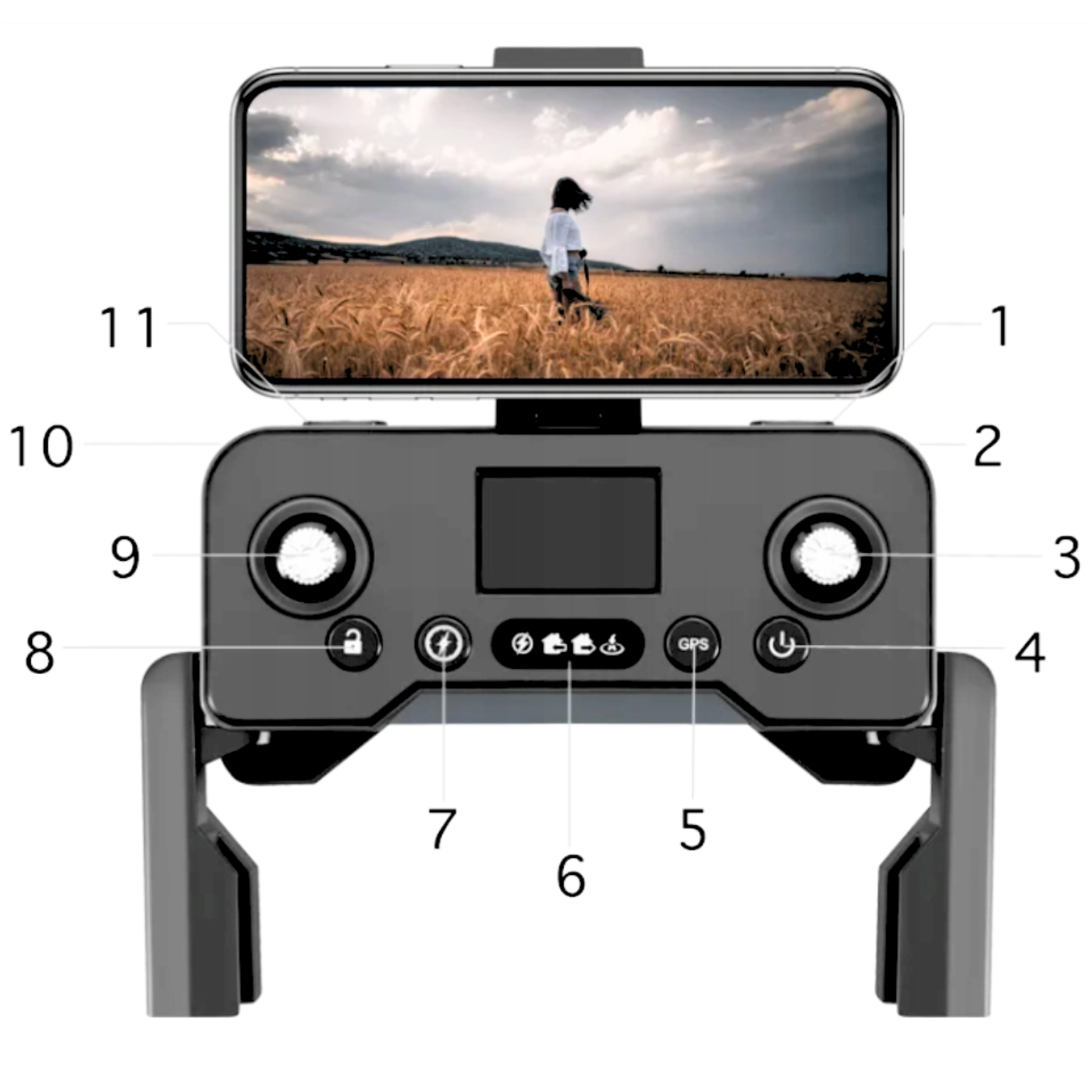 Do kierowania dronem w powietrzu służy kontroler mający ergonomiczną składaną konstrukcję, utrzymuje telefon komórkowy, jest wygodny i łatwy w obsłudze.