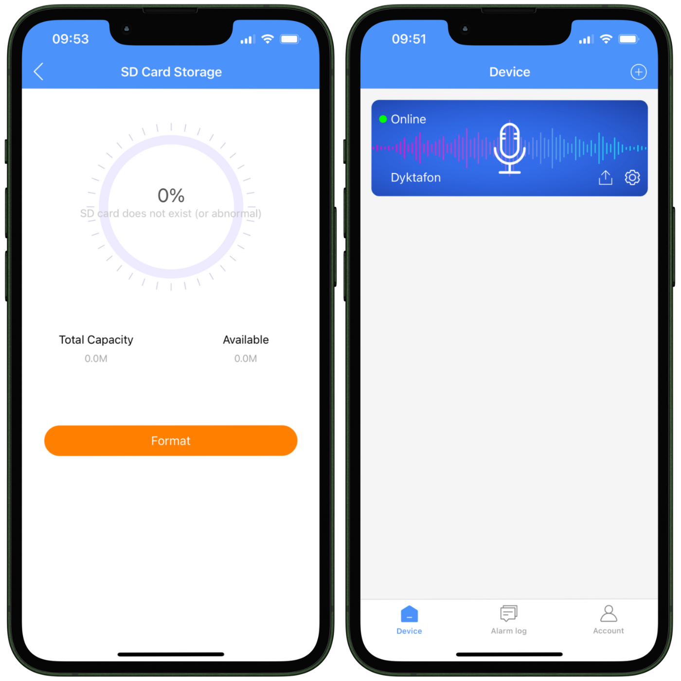 - Powiadomienia push – Otrzymuj natychmiastowe alerty o wykrytym dźwięku czy niskim poziomie baterii.