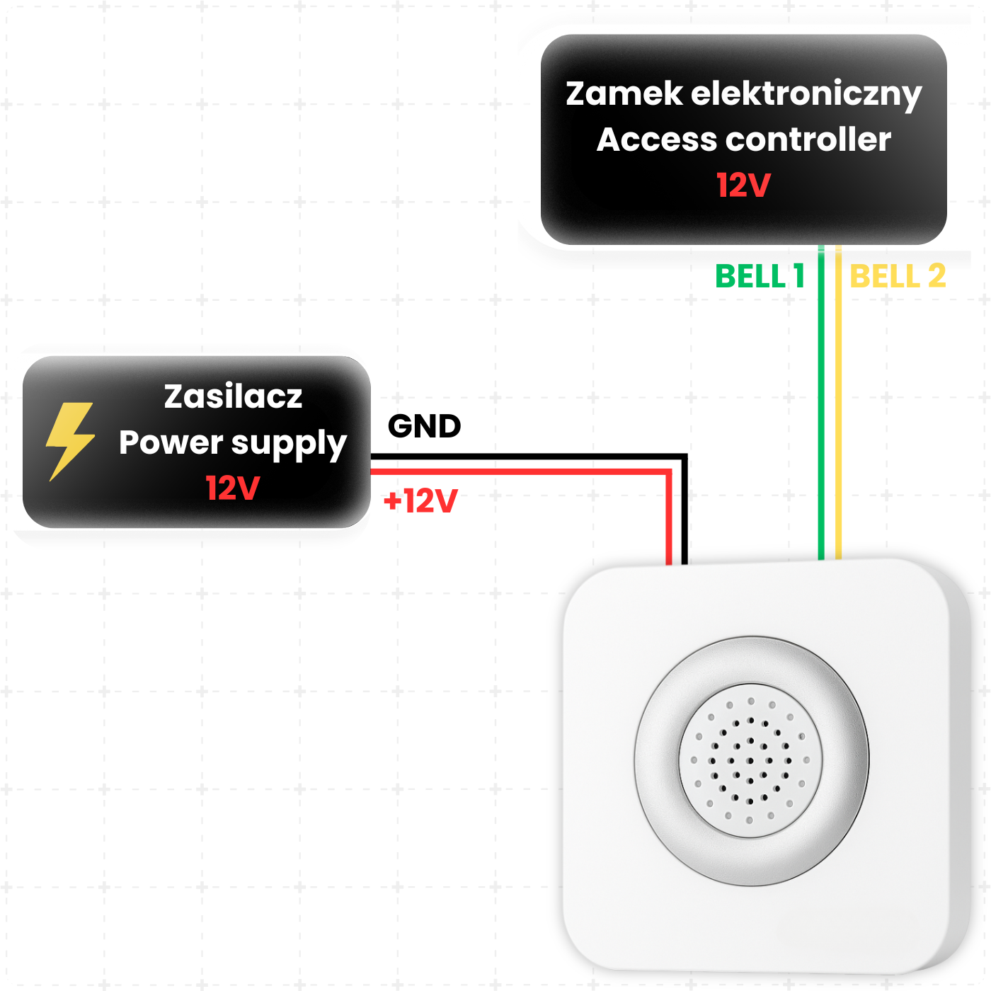 - BELL / BELL – wyjście do przewodowego dzwonka (zielony i żółty przewód)