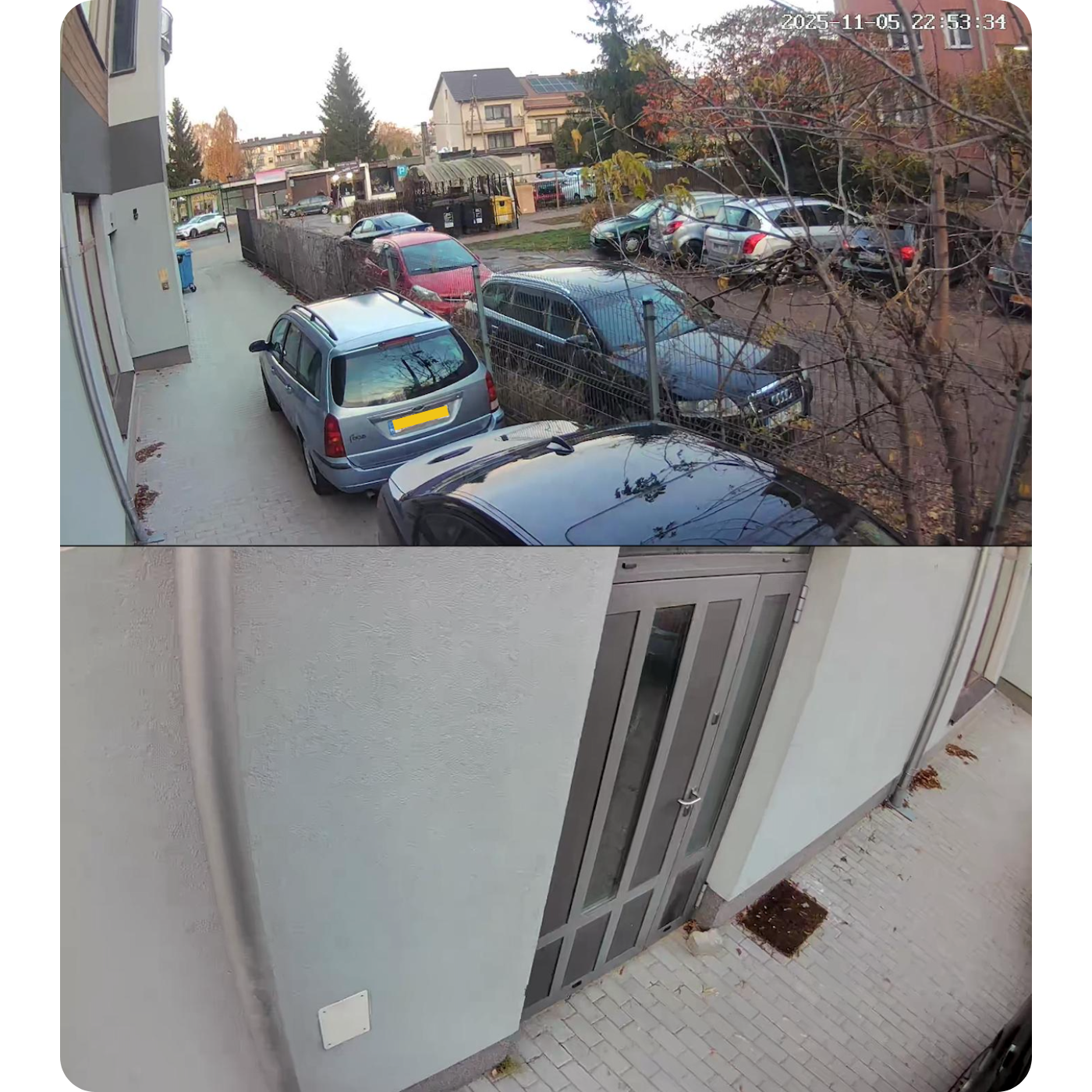 - Rozdzielczość wideo: 3.0 MP + 3.0 MP, kompresja H.265 / 15 FPS, format PAL