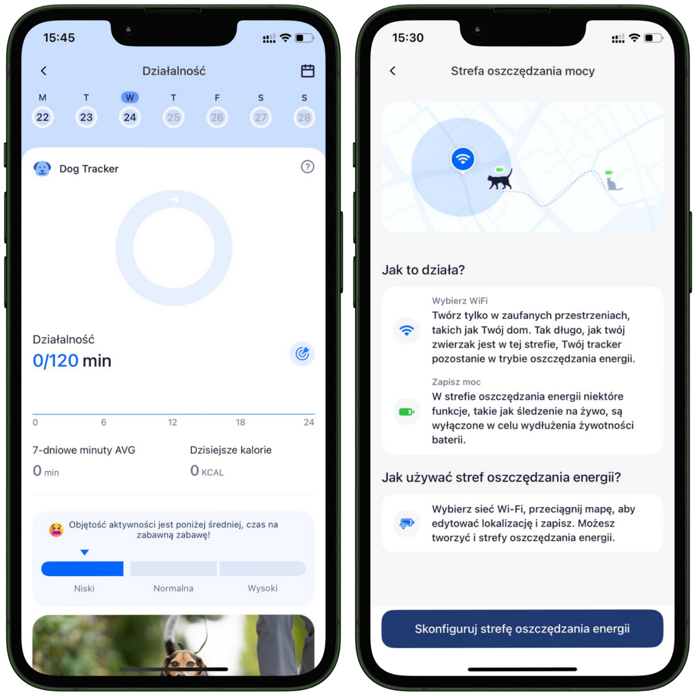 Dzięki niej masz stały podgląd na to, gdzie znajduje się Twój pies czy kot – lokalizacja jest aktualizowana w czasie rzeczywistym, a w razie potrzeby możesz uruchomić sygnał dźwiękowy lub świetlny, aby szybciej odnaleźć swojego zwierzaka.