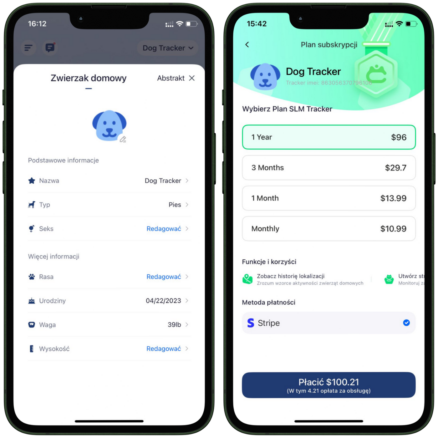 10. Zarządzanie lokalizatorami i danymi pupila – Możliwość przypisania wielu lokalizatorów do jednego konta oraz edycji danych o każdym zwierzęciu. Użytkownik może dzięki temu śledzić kilka pupili w jednej aplikacji.
