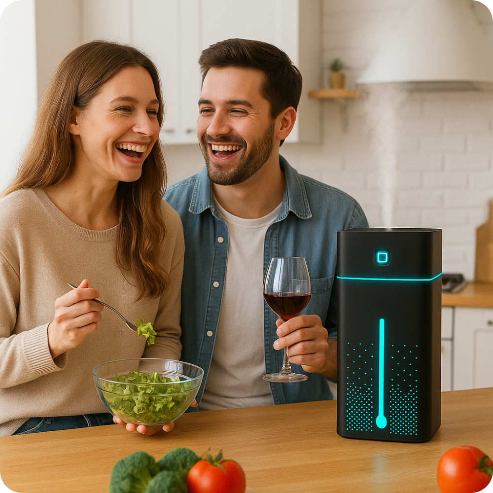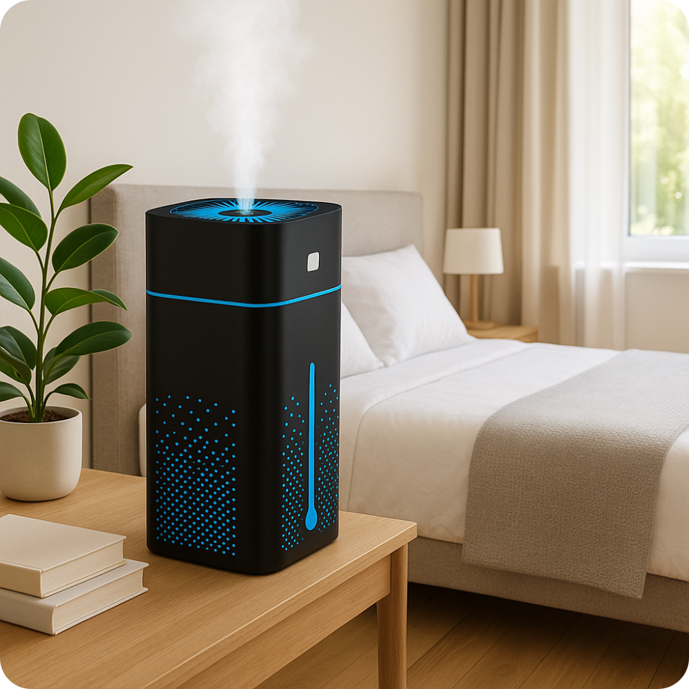 Jednocześnie urządzenie pełni funkcję wydajnego nawilżacza powietrza – skutecznie poprawia mikroklimat w pomieszczeniu. Regularne korzystanie z nawilżacza wpływa korzystnie na komfort oddychania, zdrowie skóry i ogólne samopoczucie, tworząc przyjemną i zdrową atmosferę w Twoim domu.