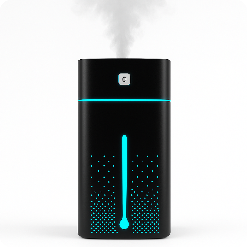 10. Prosta obsługa jednym przyciskiem – Pozwala szybko przełączać się między trybami. Wystarczy jedno dotknięcie, aby uruchomić mgiełkę, podświetlenie lub wyłączyć urządzenie.