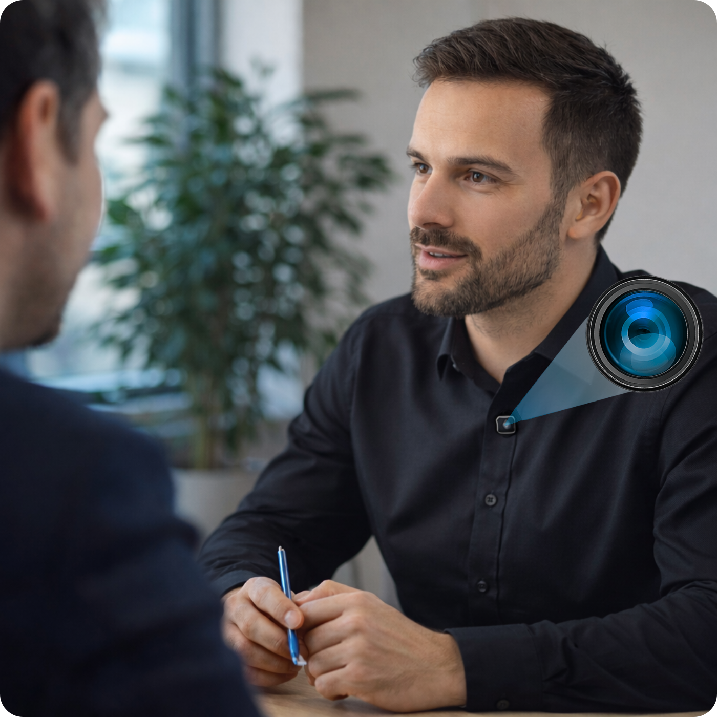 Mini kamera umożliwia obustronny przesył dźwięku: wbudowany w kamerę mikrofon przekazuje głos do osoby z aplikacją, a ona może Ci odpowiadać prosto do ucha. Bezprzewodowe połączenie modułu kamery z mikrosłuchawką gwarantuje, że cała komunikacja pozostaje całkowicie niewidoczna dla otoczenia.