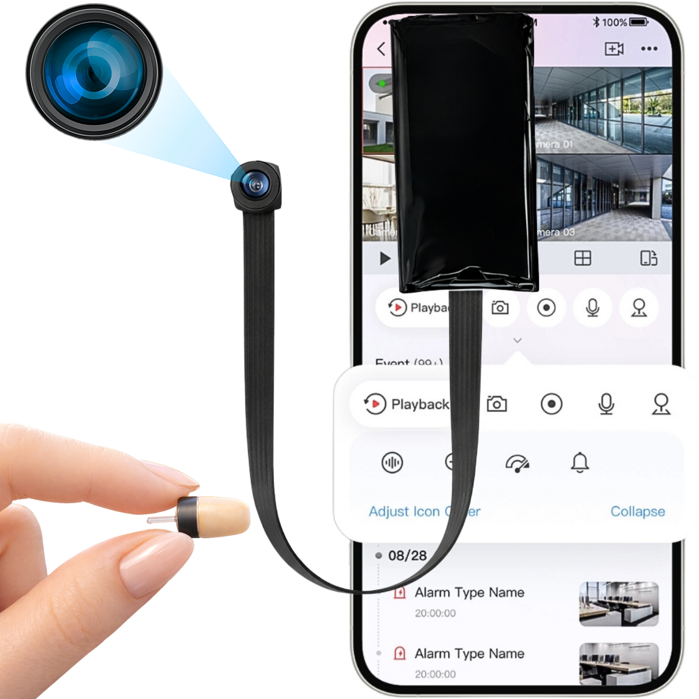 1. Aplikacja mobilna i zdalna kontrola: Dedykowana aplikacja umożliwia zdalny podgląd obrazu na żywo, odtwarzanie nagrań oraz zarządzanie ustawieniami mini kamery.