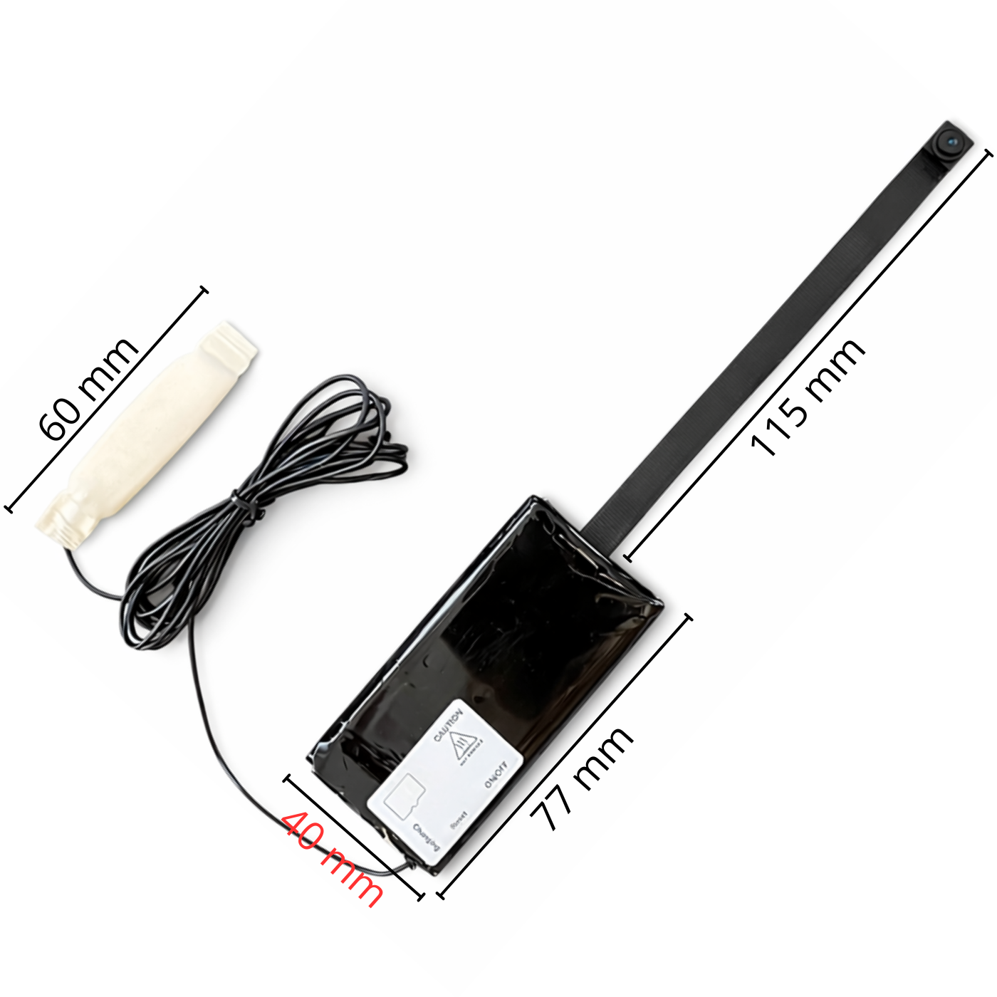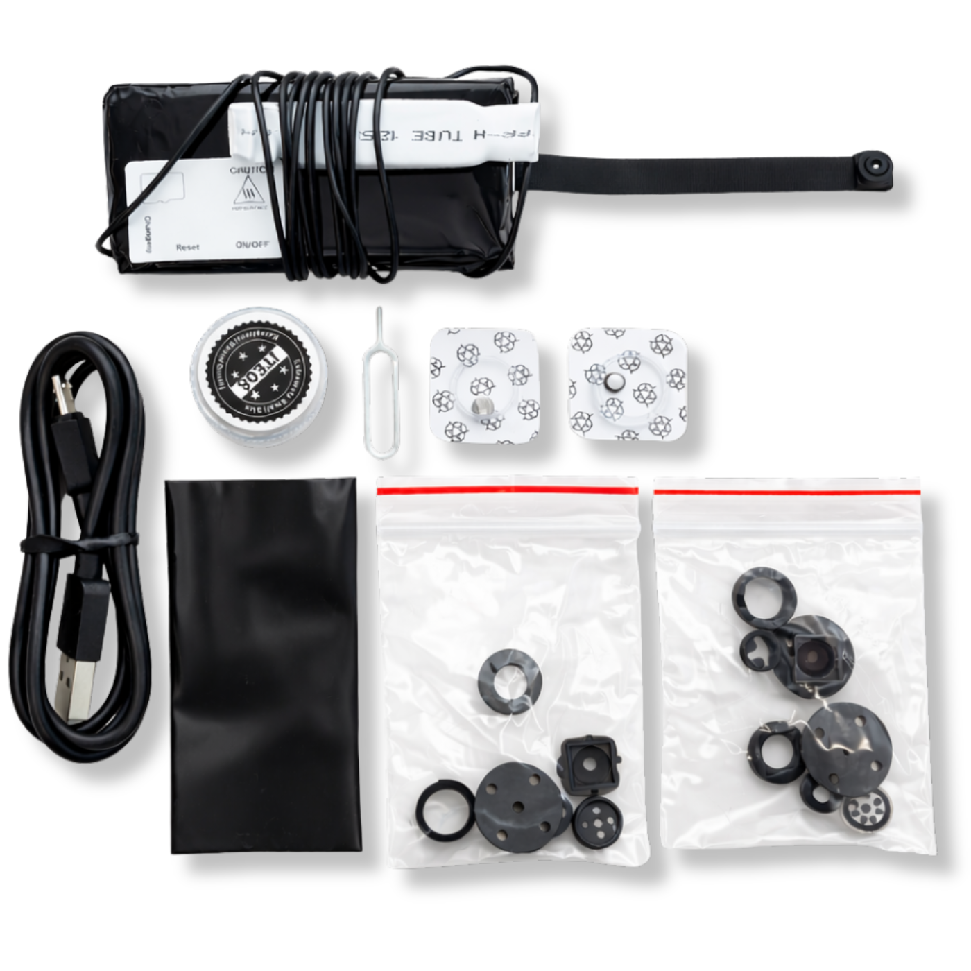 W zestawie znajdziesz akcesoria do ukrycia obiektywu np. jako guzik w koszuli.
