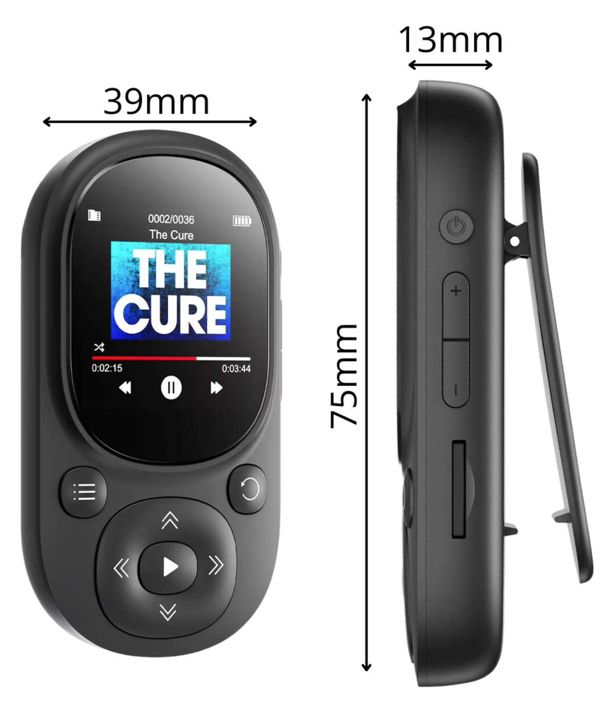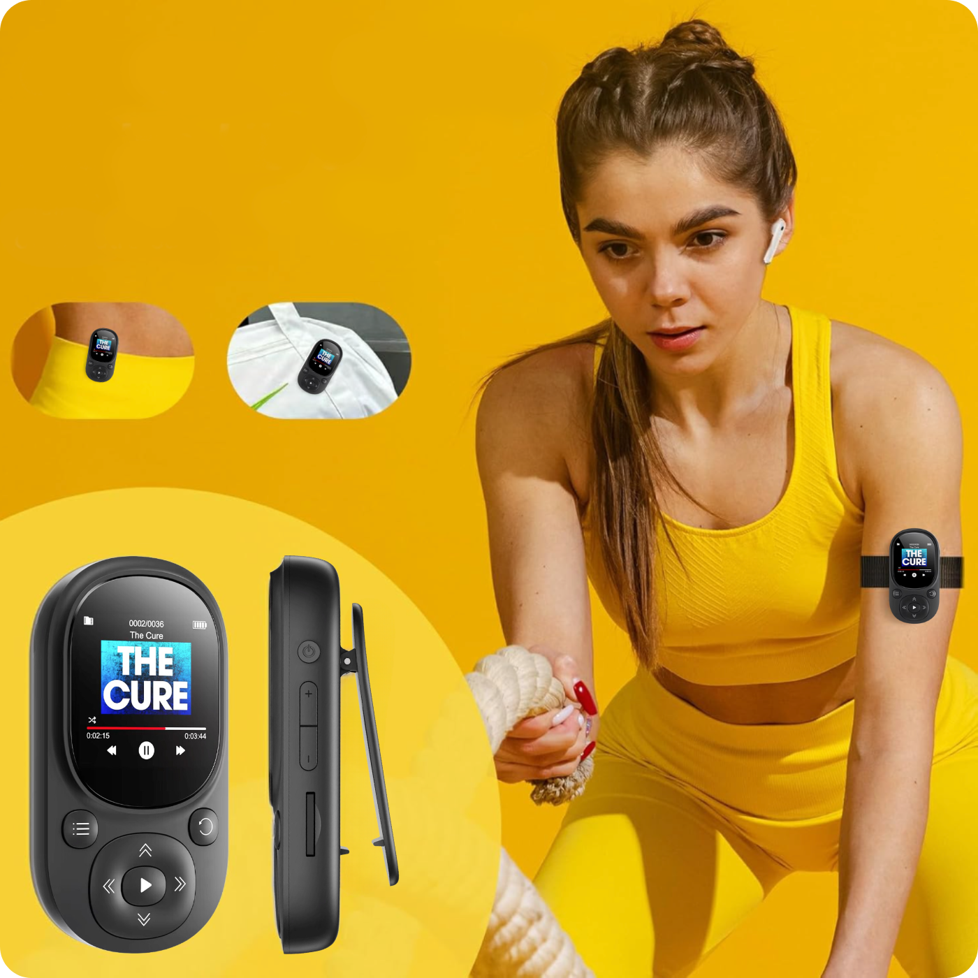 Dzięki praktycznemu klipsowi, urządzenie można łatwo i pewnie przymocować do odzieży lub opaski na ramię, co zapewnia pełną swobodę ruchu bez obawy o jego zgubienie. Niezależnie od tego, czy biegniesz, podnosisz ciężary, czy ćwiczysz na siłowni, odtwarzacz pozostaje na miejscu, towarzysząc Ci w każdym kroku. Łączy on funkcjonalność z wygodą, gwarantując, że Twoja ulubiona muzyka będzie zawsze z Tobą, nawet podczas najbardziej wymagających wyzwań.