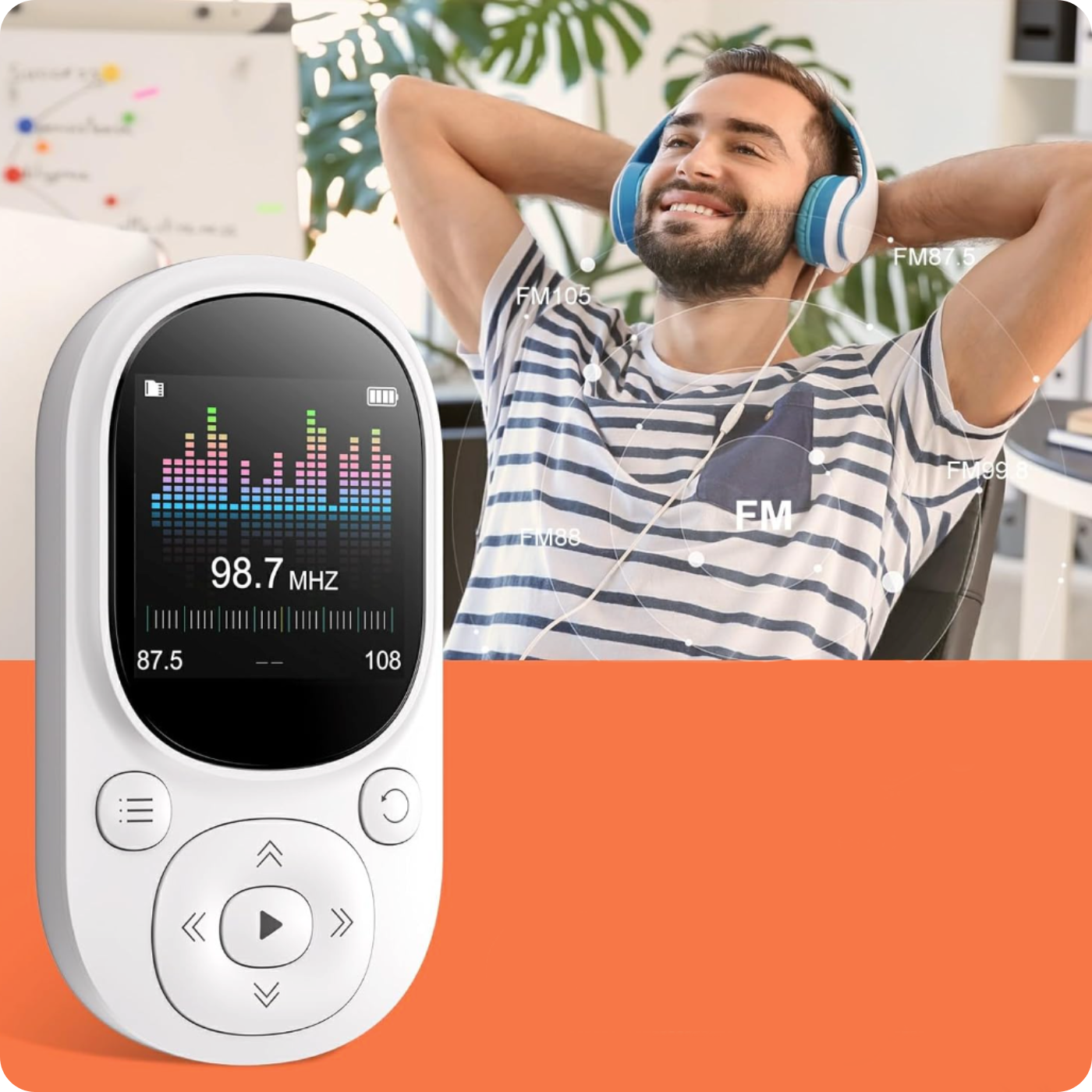 Odtwarzacz muzyki umożliwia łatwy dostęp do Radia FM, które działa po podłączeniu słuchawek pełniących funkcję anteny. Dzięki szerokiemu zakresowi częstotliwości od 76 MHz do 108 MHz, możesz cieszyć się ulubionymi stacjami radiowymi w każdej chwili.