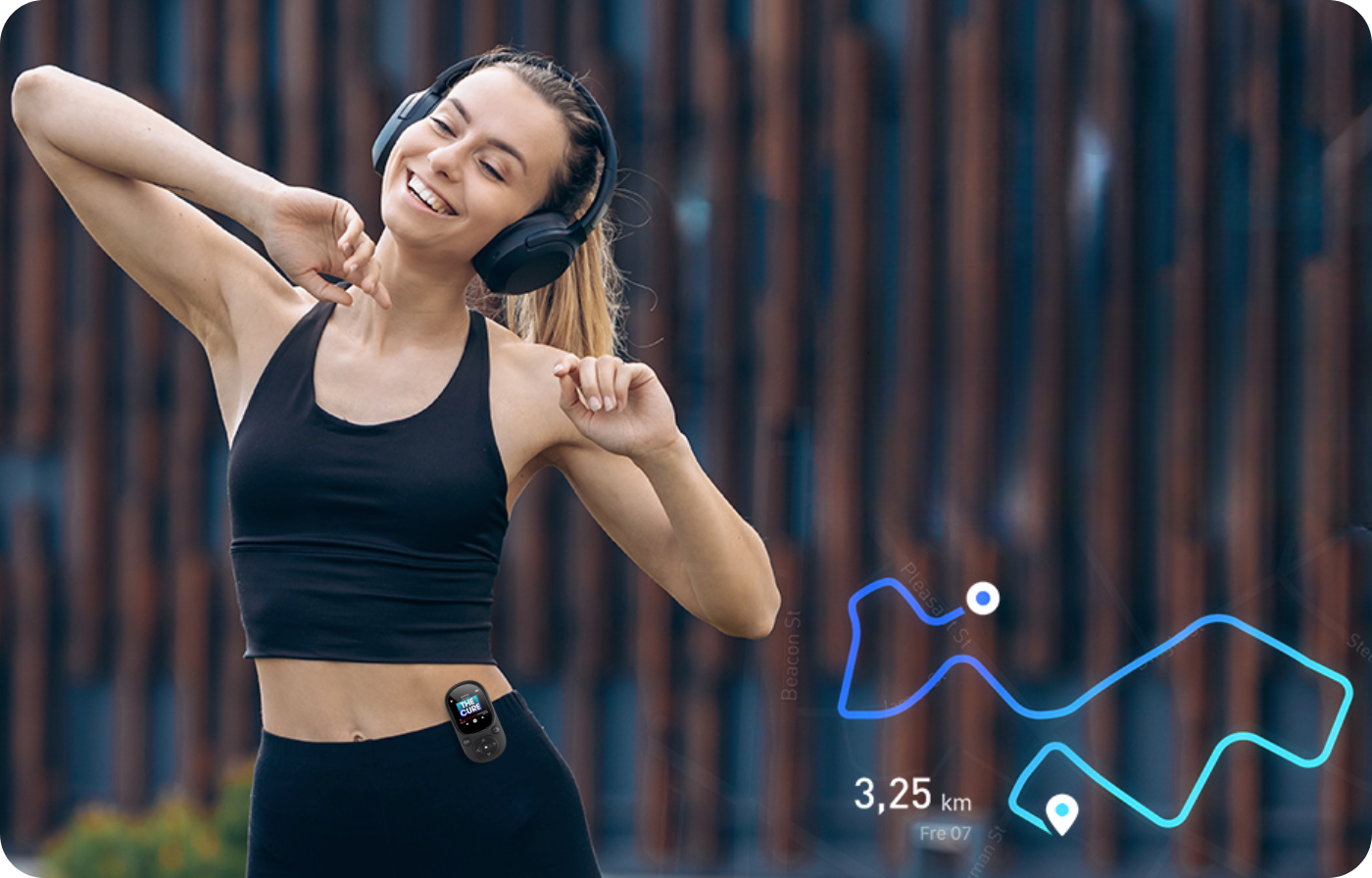 To nie tylko urządzenie do słuchania muzyki – to także Twój niezawodny towarzysz podczas aktywności fizycznej. Wbudowany krokomierz pozwala na dokładne śledzenie liczby kroków i pokonanej odległości, co czyni go idealnym narzędziem do motywowania się na co dzień. Stan liczby kroków jest wyświetlany na głównym obrazie urządzenia.