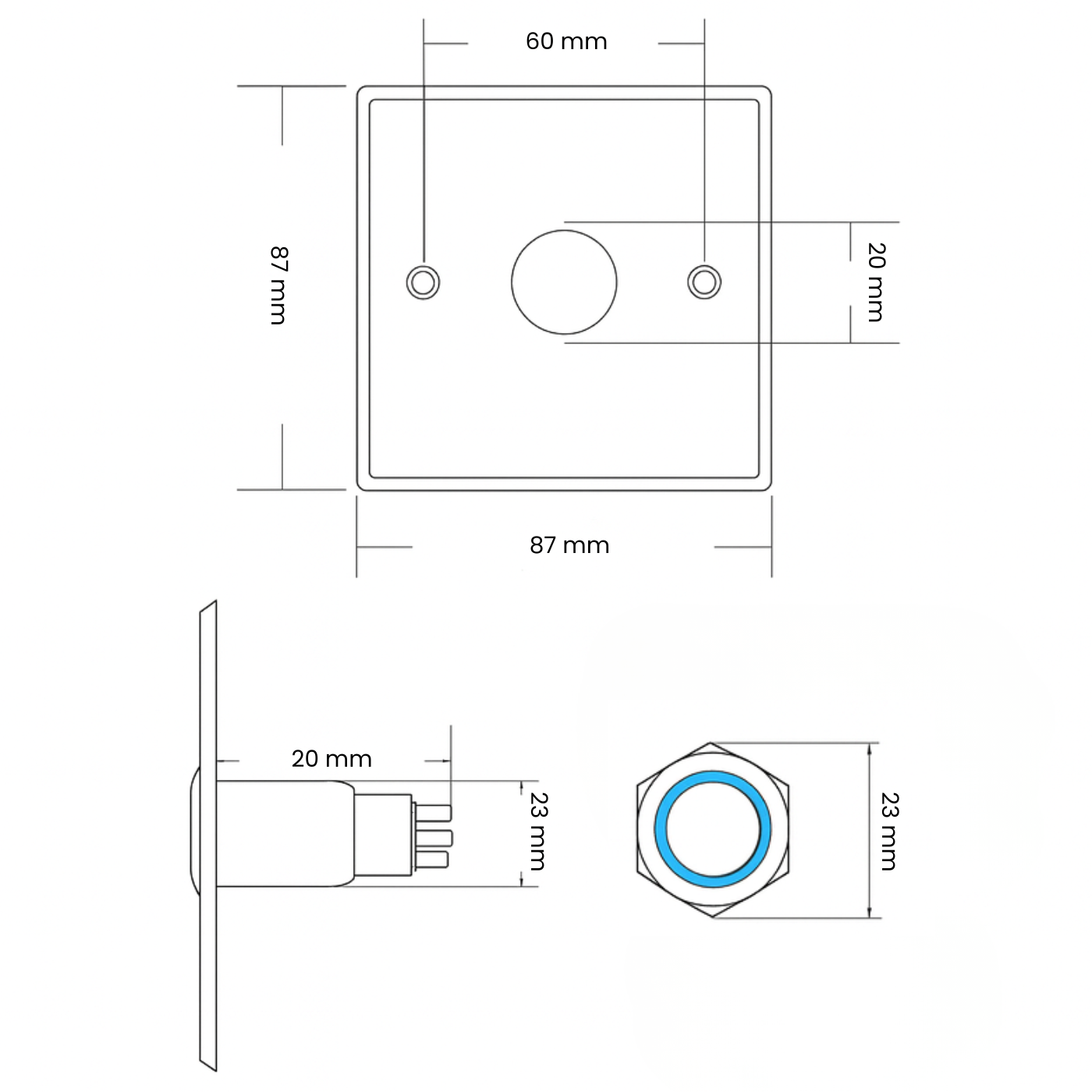 - Wymiary: 87 x 87 mm