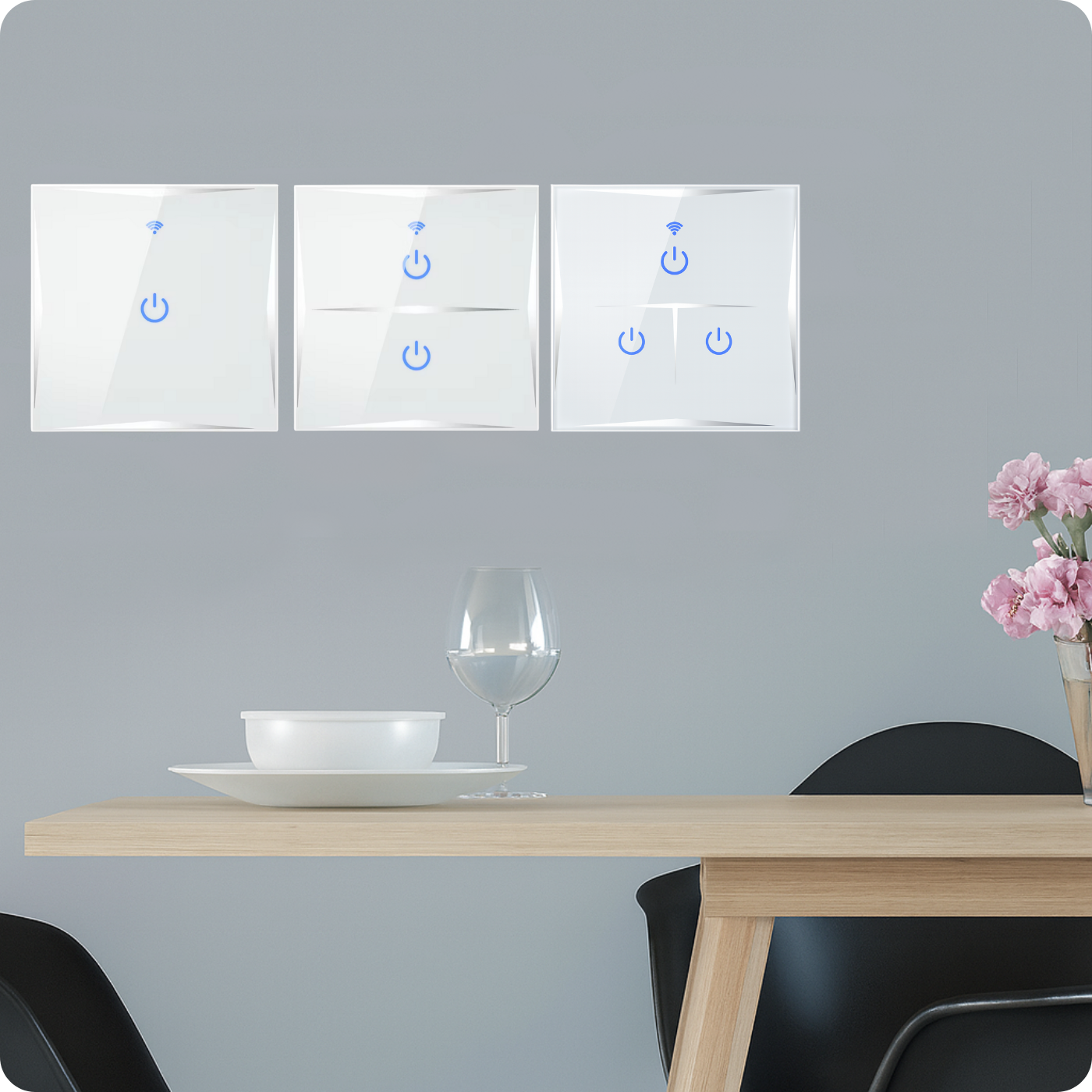 - Posiadanie szkła hartowanego zapewnia wytrzymałość włącznika. Dodatkową zaletą jest łatwe utrzymanie włącznika w czystości.