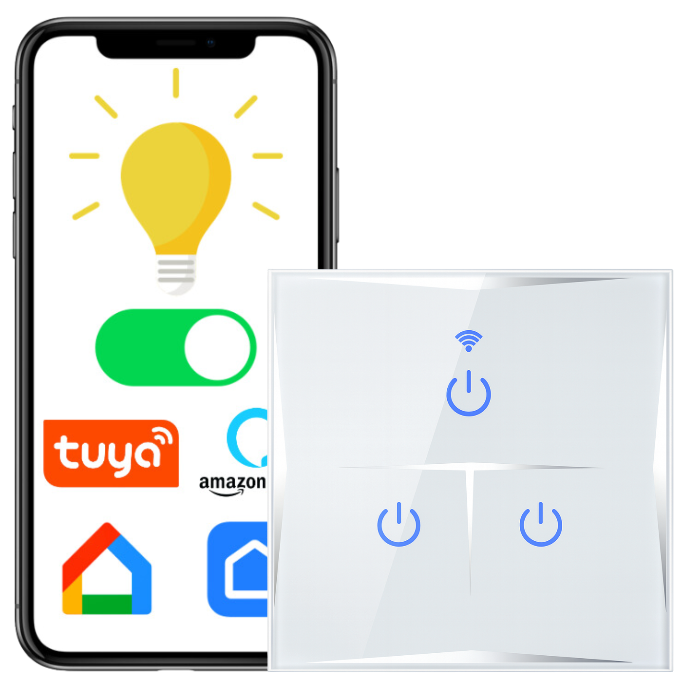 - Włącznik współpracuje z Smart Life, Tuya, Amazon Alexa, Google Assistant