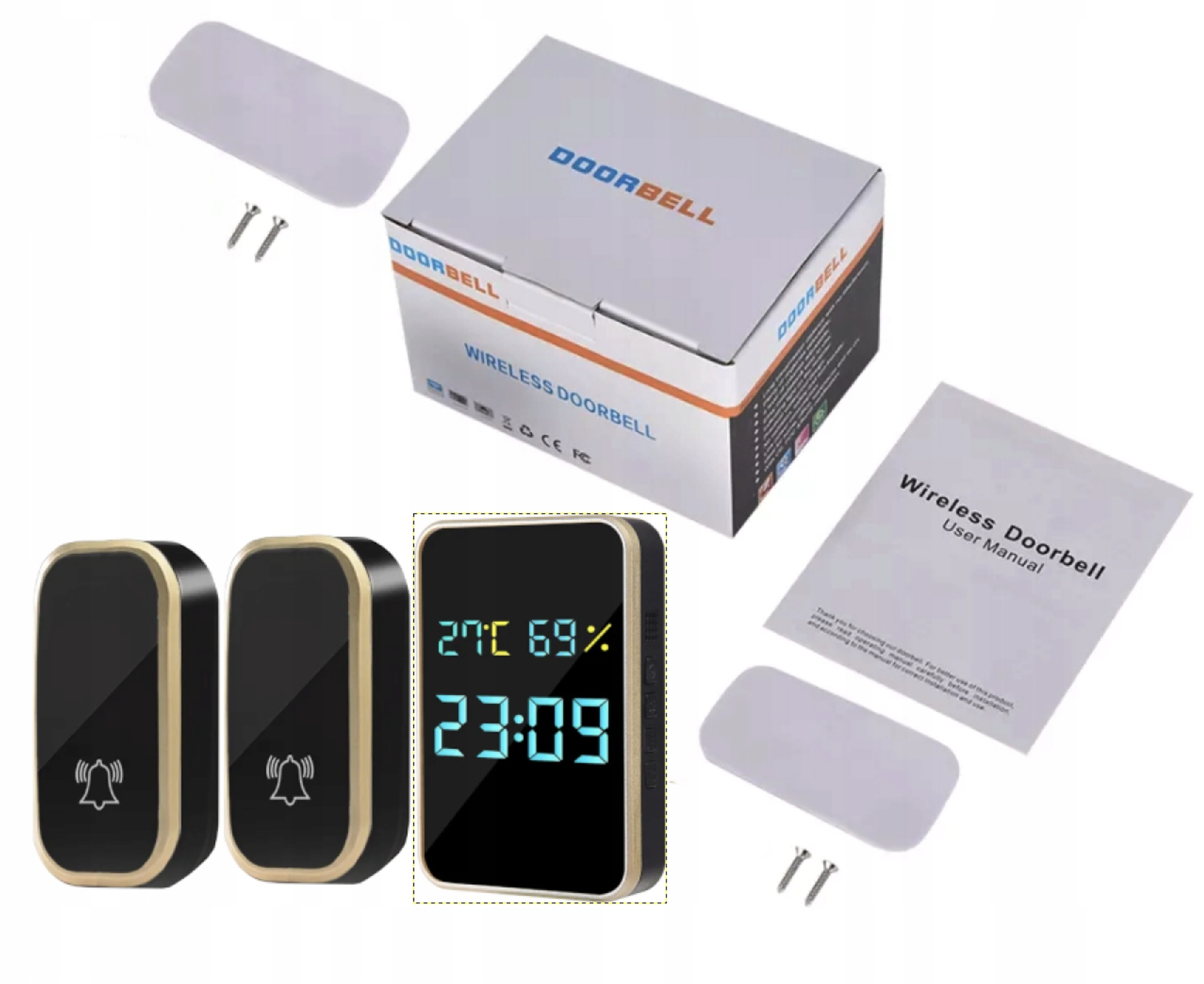 Dzwonek bezprzewodowy 2T295-BG 2T1R Czarno-złoty