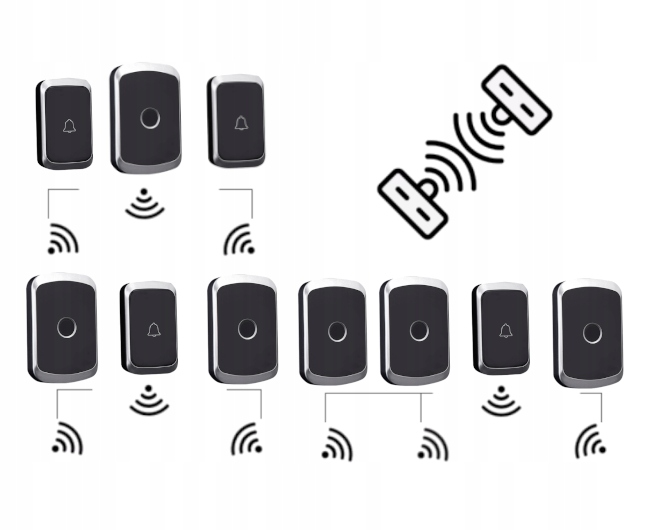 Każdy nadajnik komunikuje się z odbiornikiem za pomocą unikatowego kodu sygnału, co eliminuje możliwość uruchomienia innego odbiornika niż ten przypisany do przycisku dzwonka.