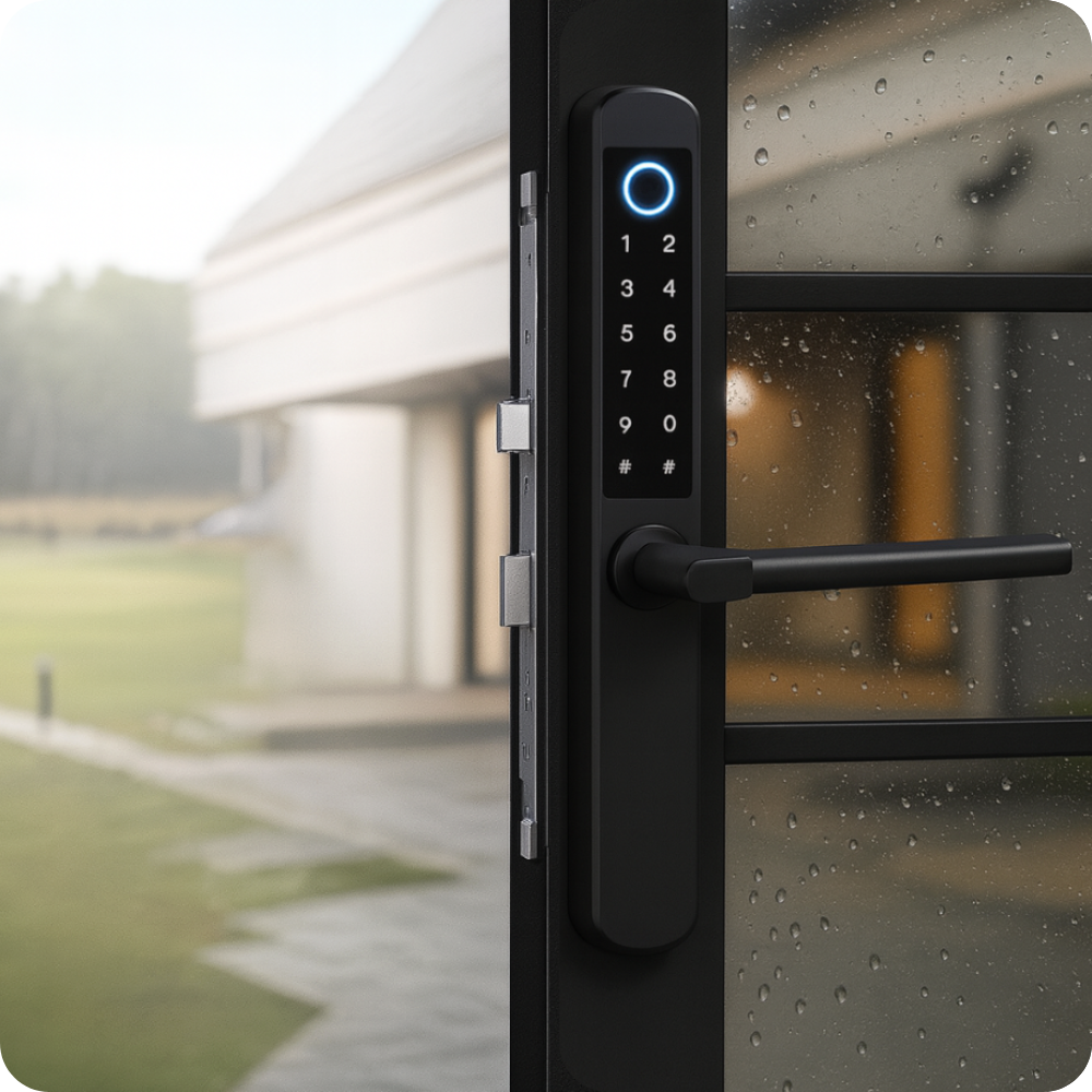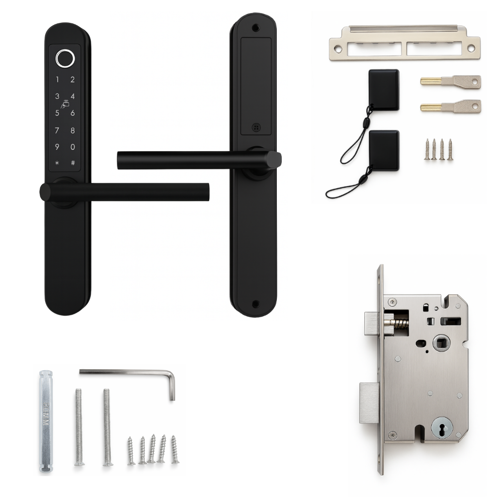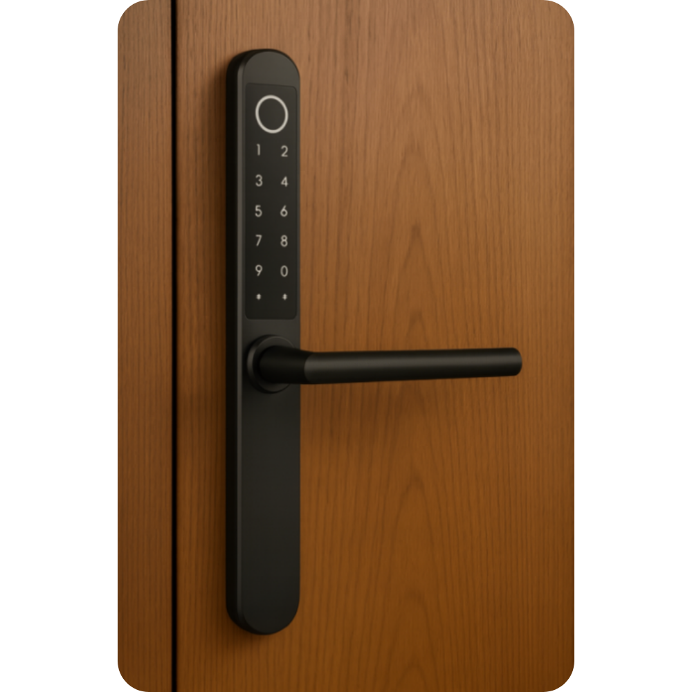 Automatyczne ryglowanie po domknięciu drzwi eliminuje ryzyko pozostawienia otwartych drzwi, a wbudowana pamięć obsługuje 200 kart, 200 odcisków palców i 200 kodów PIN – plus nielimitowane e-klucze w aplikacji. Brak internetu? Żaden problem – klamka działa lokalnie, a dane użytkowników przechowuje wewnętrznie.