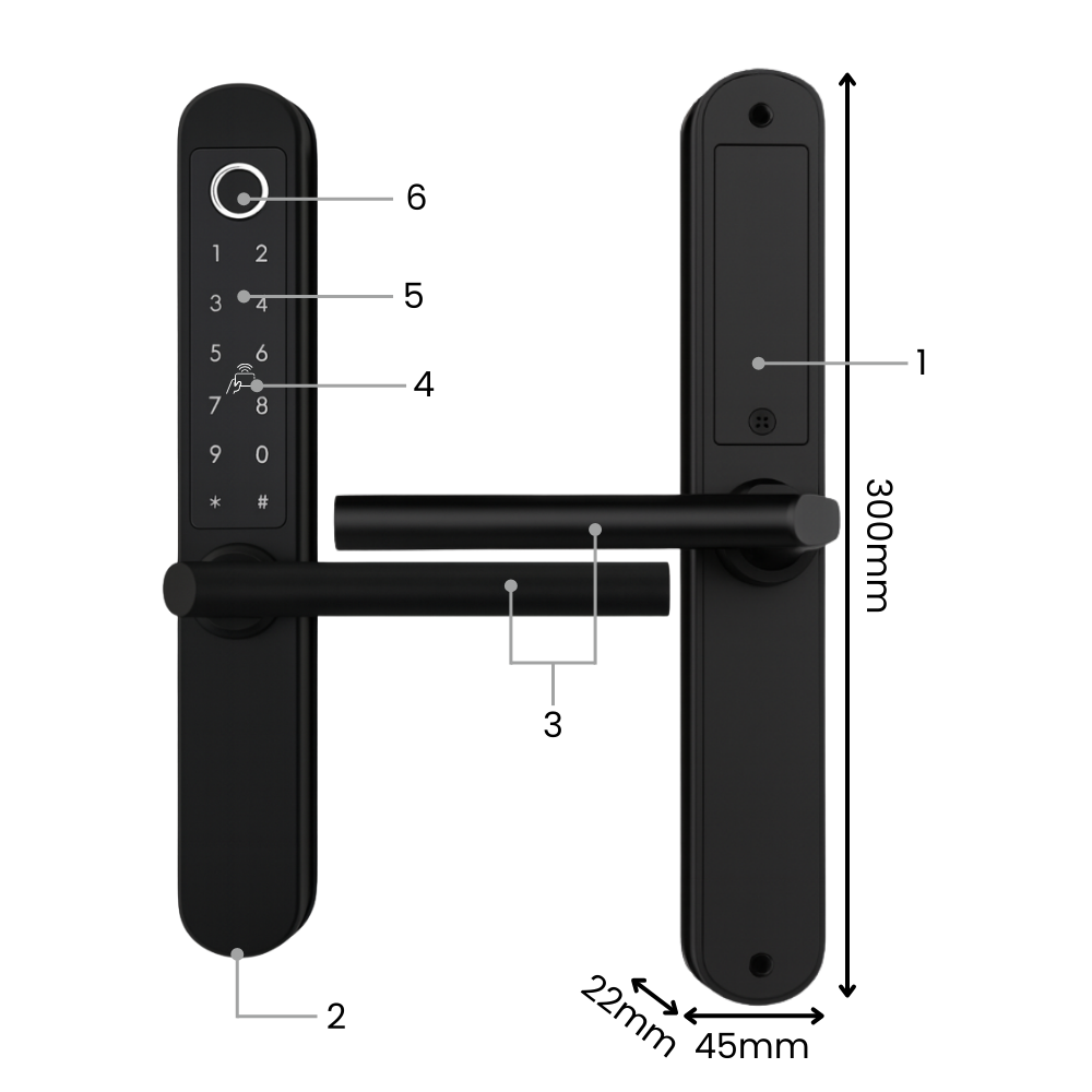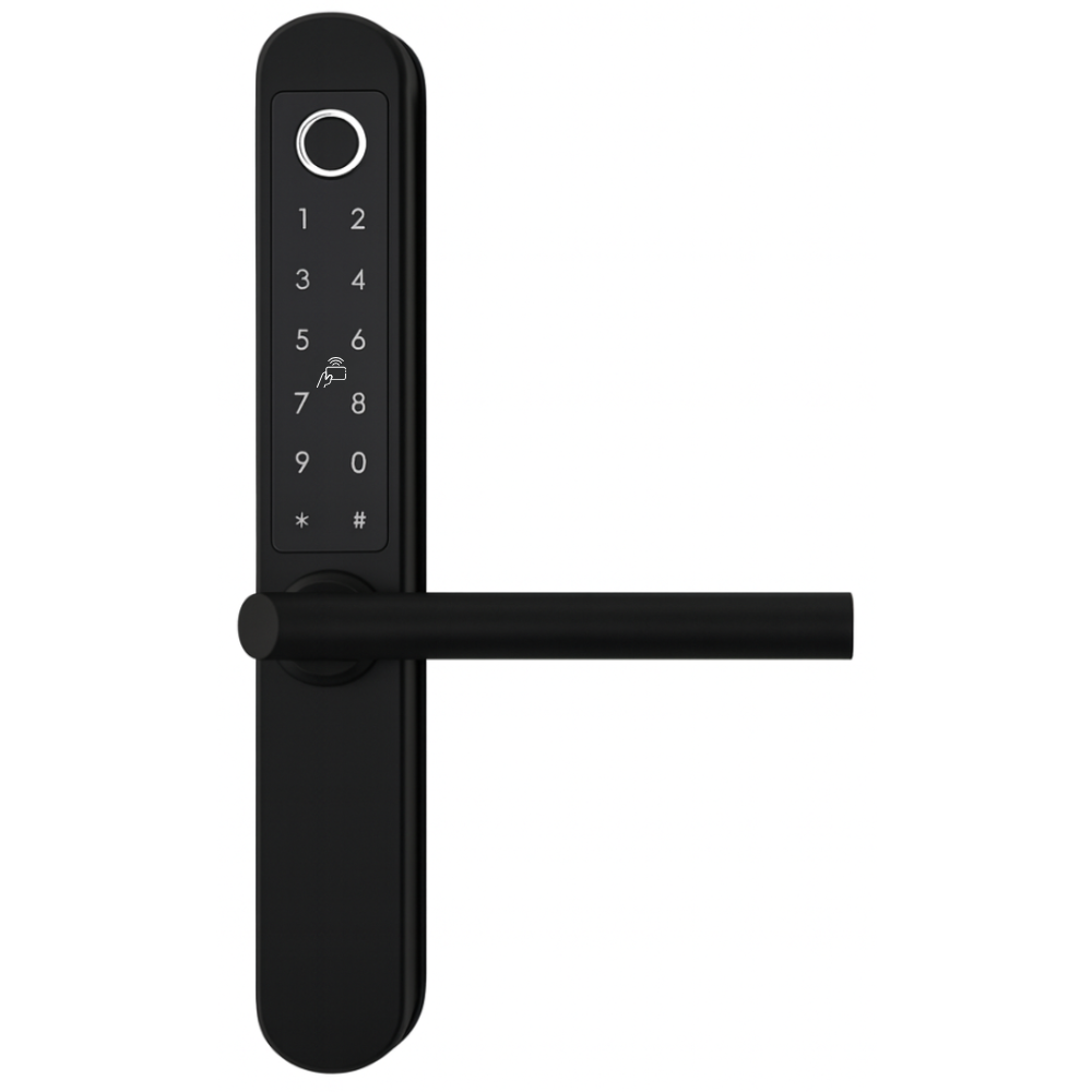 - Metody odblokowania: odcisk palca, karta 13.56 MHz, hasło, aplikacja, klucz mechaniczny