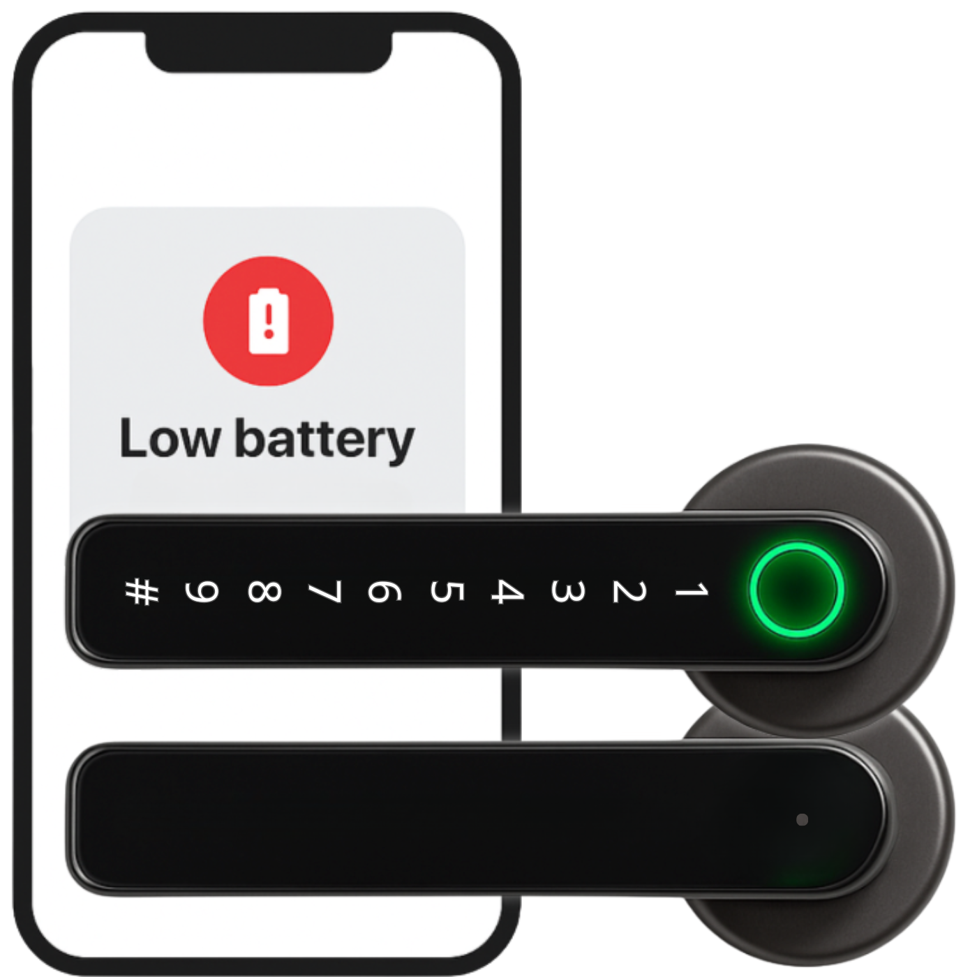 Zamek jest wyposażony w alarm niskiego poziomu baterii, co pozwala na bieżąco monitorować stan zasilania. Na aplikację zostanie wysłane powiadomienie o niskim stanie poziomu baterii ≥20%, ≥10%, ≥5% a na samym zamku zaświeci się czerwone światło po jego odblokowaniu (3 mignięcia).