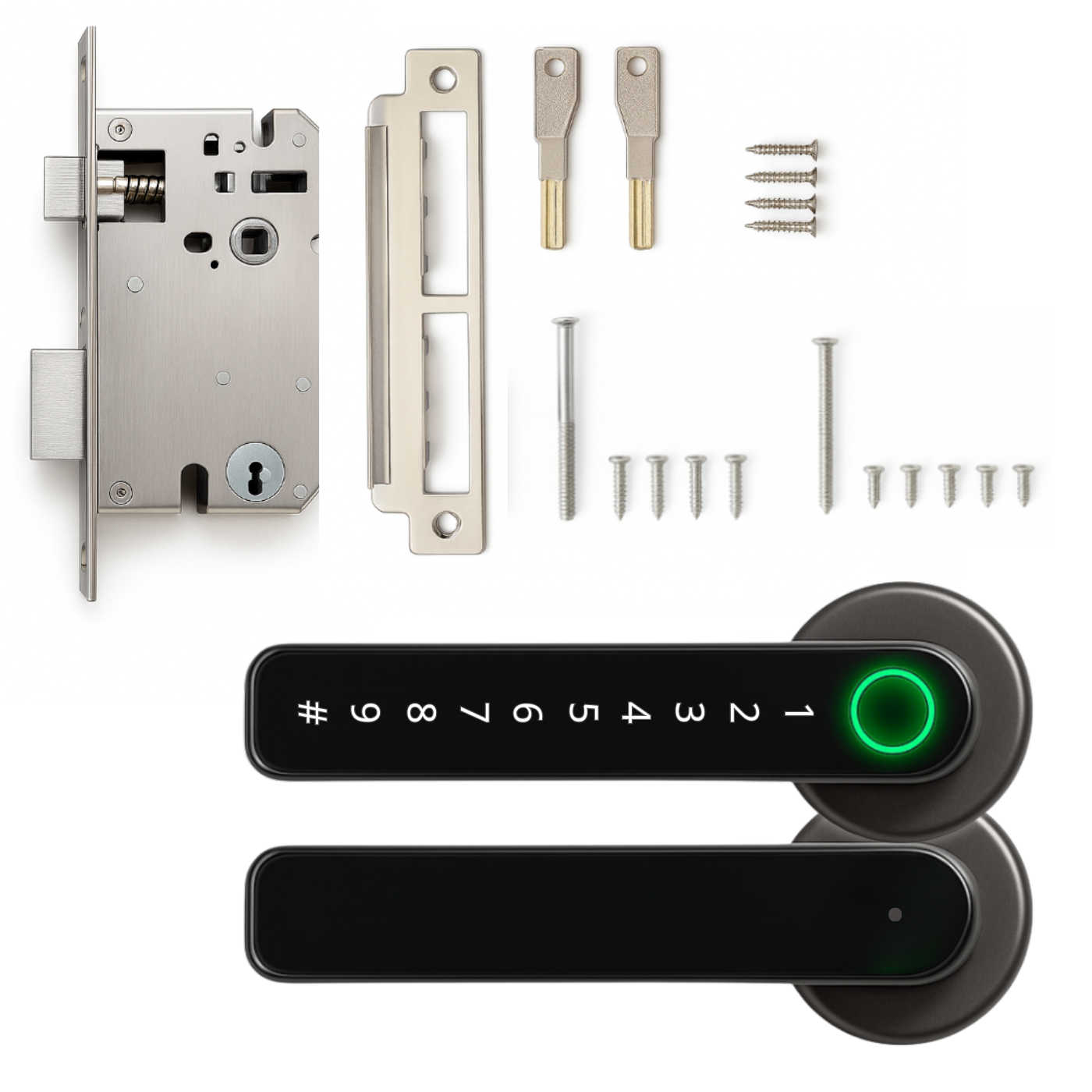 - 1x Akcesoria do montażu dla różnych grubości drzwi (35-55mm)