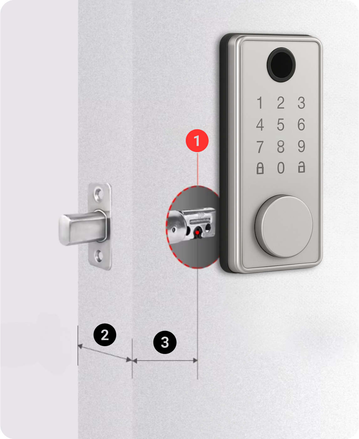 - Czujnik zamknięcia drzwi (brak w zestawie): Po aktywowaniu w aplikacji – zamek automatycznie zamyka się po domknięciu drzwi