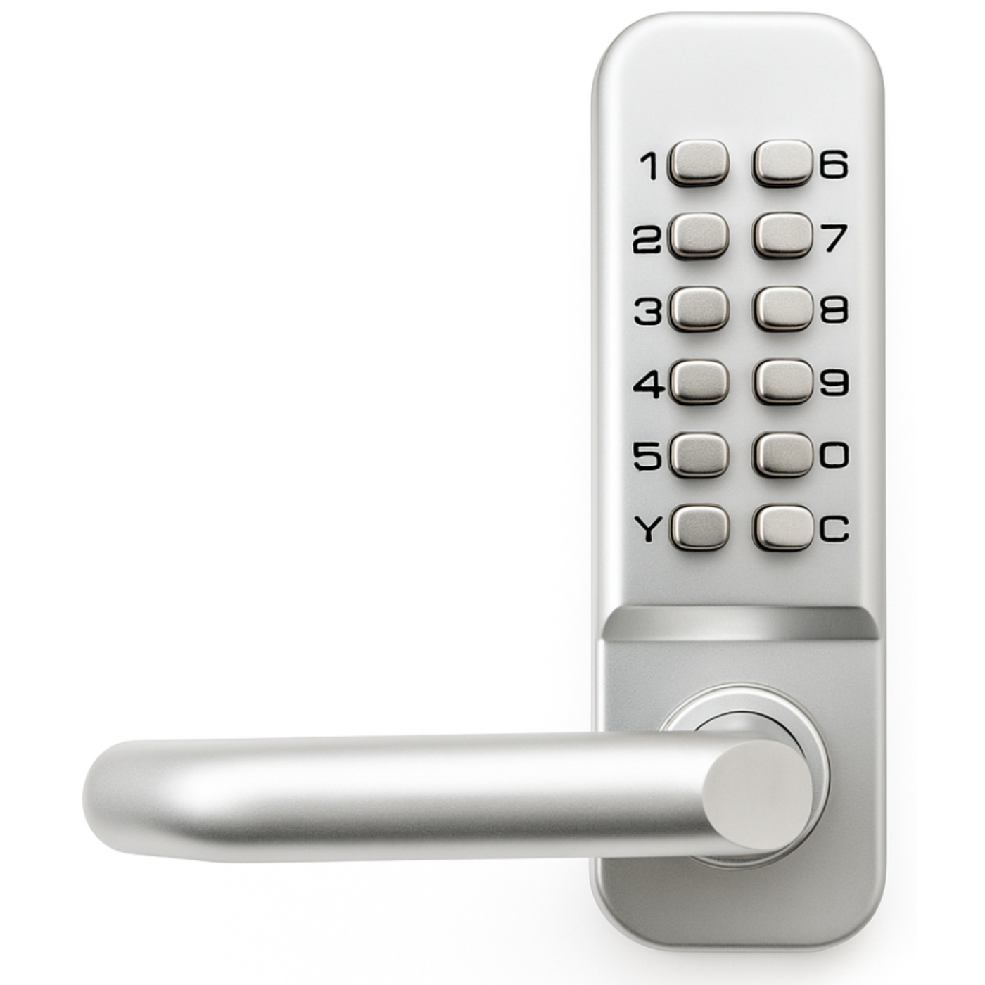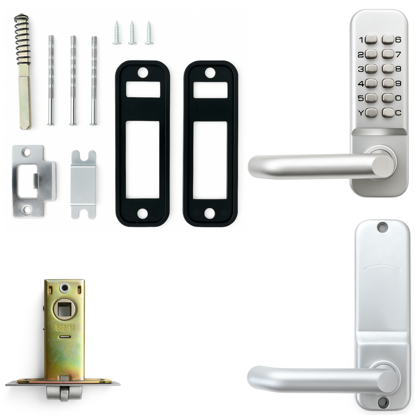 Klamka kodowa S4A-208A marki Spreest to solidne i proste w obsłudze rozwiązanie zabezpieczające, które nie wymaga zasilania ani baterii. Dzięki czysto mechanicznemu systemowi szyfrowemu otworzysz drzwi za pomocą własnego, indywidualnie ustawionego kodu — bez klucza, bez aplikacji i bez ryzyka rozładowania baterii.